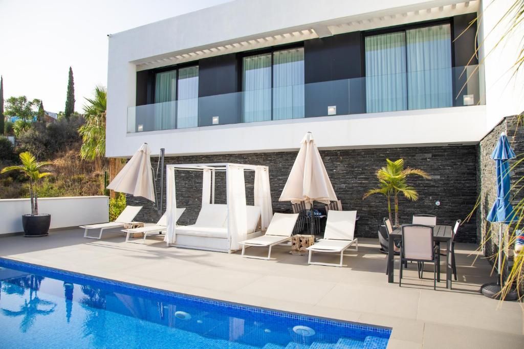 Villa moderna con 5 dormitorios, vistas panorámicas, una gran piscina exterior climatizada y vistas panorámicas al mar.